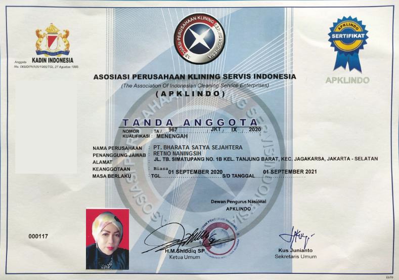 | 13 | Sertifkat Anggota Apklindo | TA/967/JKT/IX/2020 | 01 September 2021 |